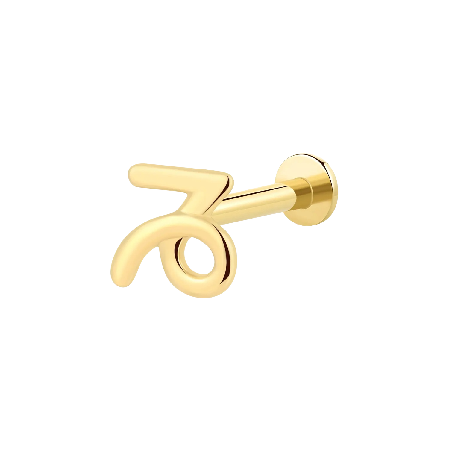 14K Solid Gold Capricorn Zodiac Threadless Labret Stud