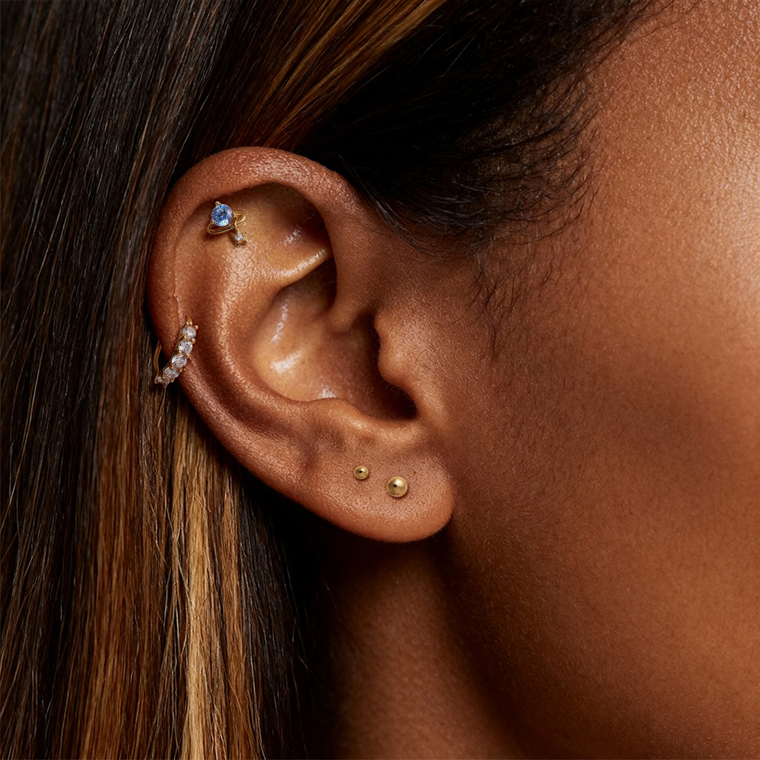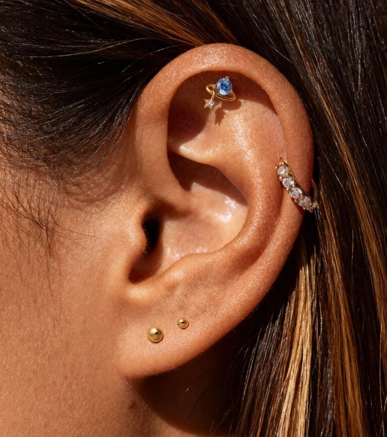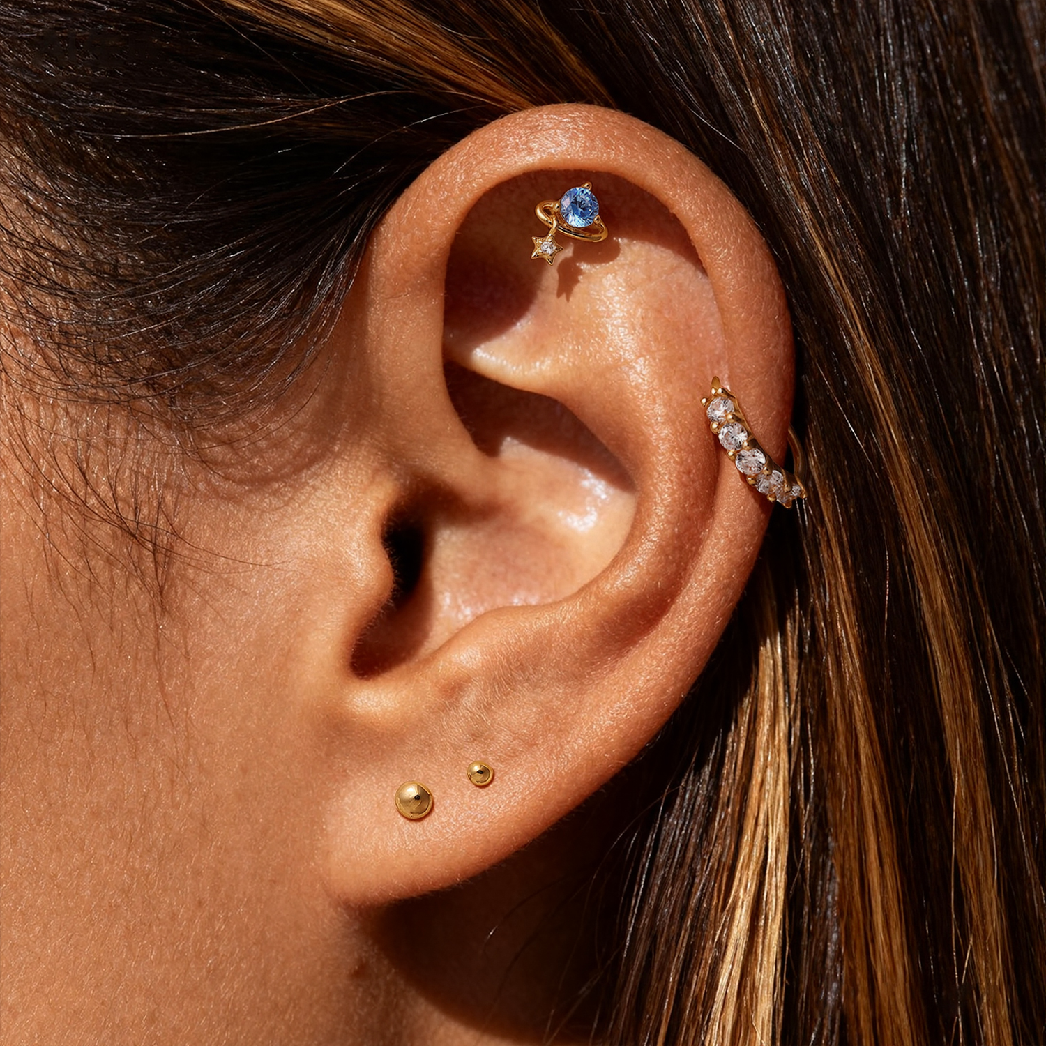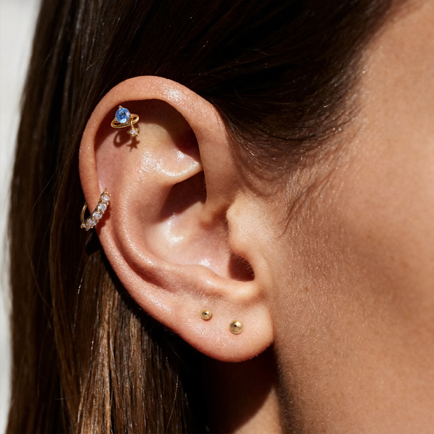 A celestial-inspired stud that mixes soft color with a small star detail, giving your stack a light, playful highlight without looking overly busy.