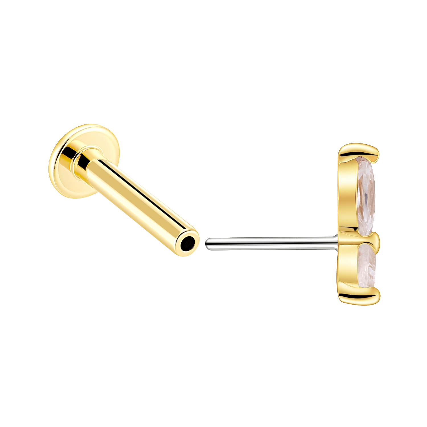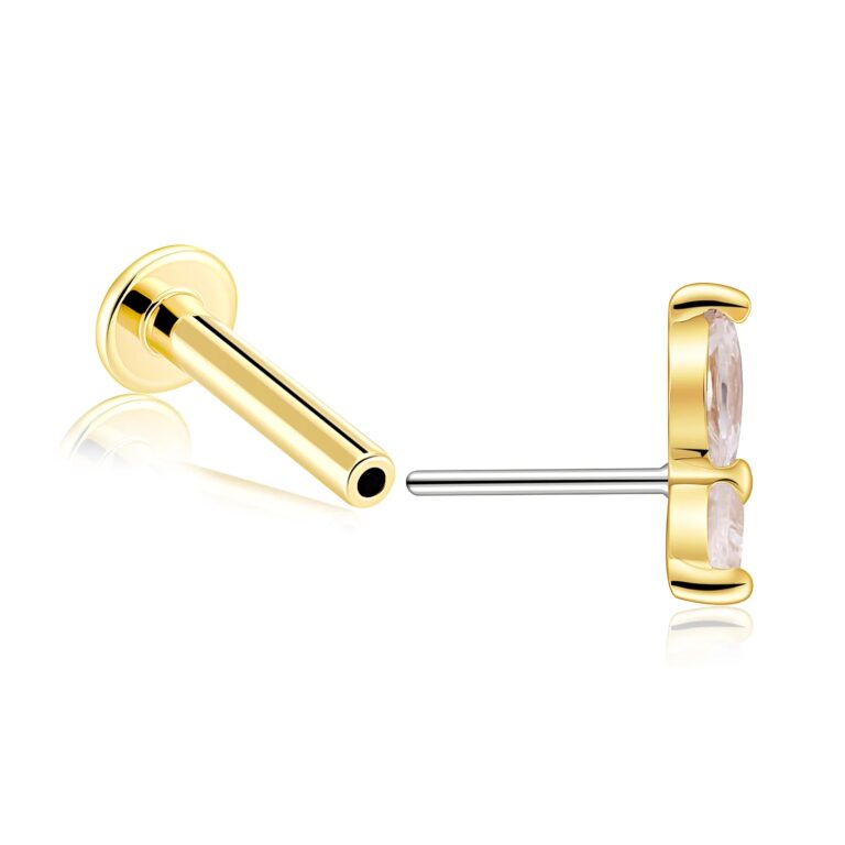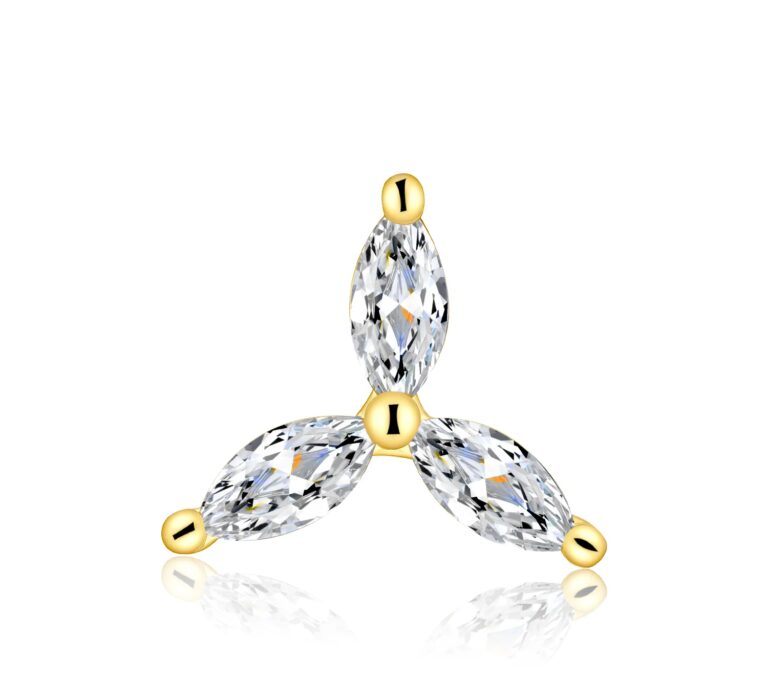 KF82G is a clover-shaped threadless labret stud set with cubic zirconia, designed to keep the look simple, polished, and easy to style.