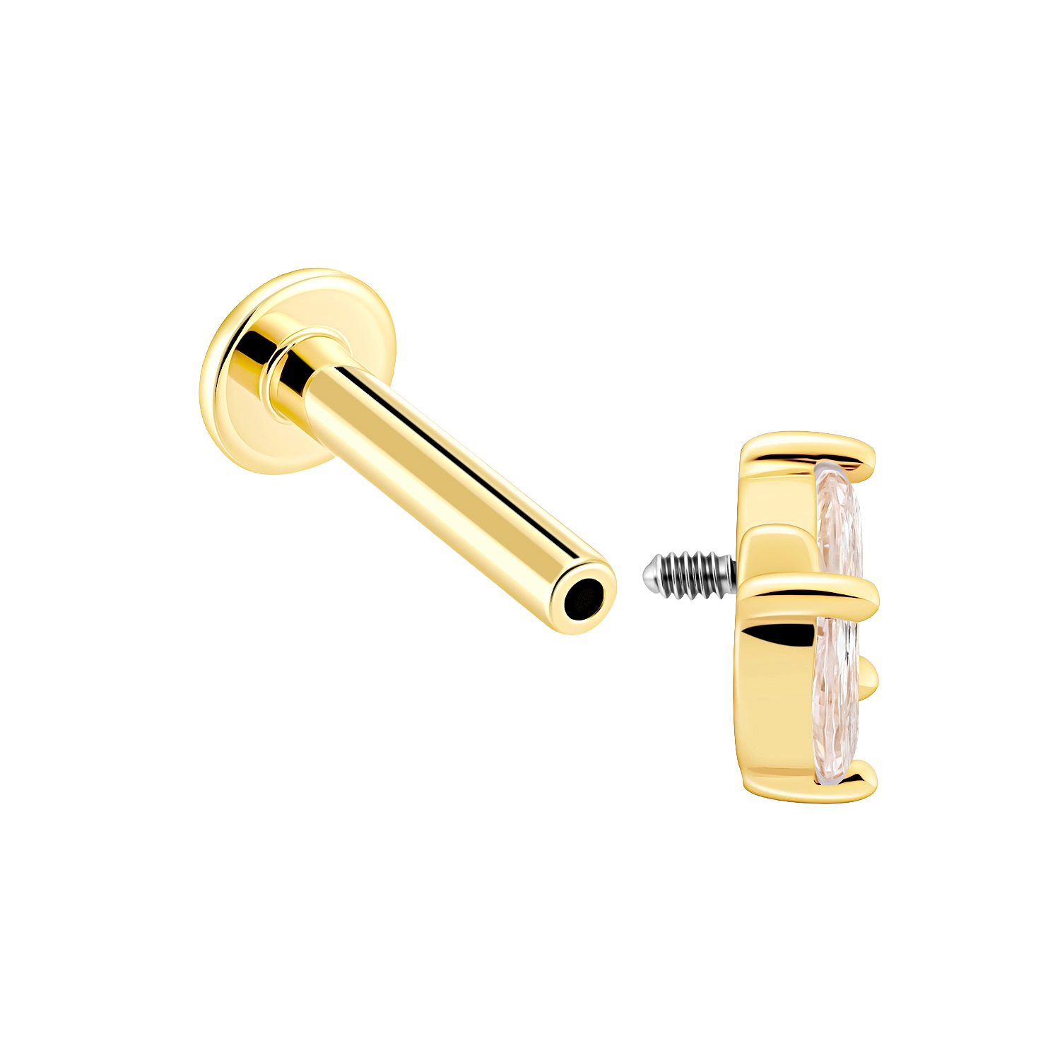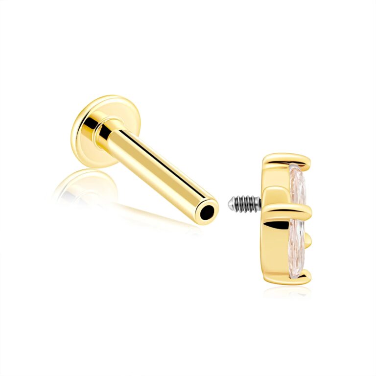 KE151G-16 is a 14K solid gold internally threaded labret stud with CZ detailing for a sleek, high-shine look that feels polished and modern.