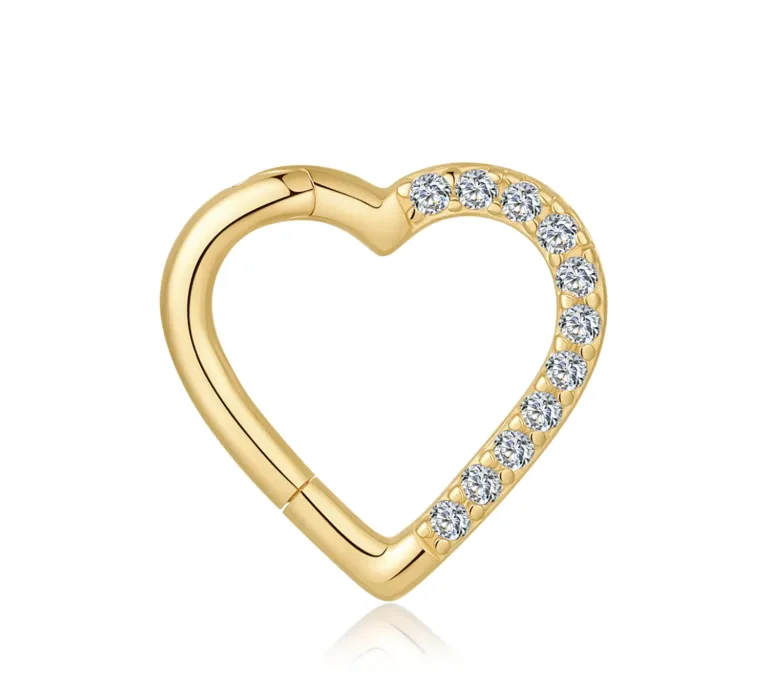 The heart outline gives a soft, expressive look, and the 11 pieces of 1.0mm CZ create a neat sparkle line that highlights the shape without looking heavy. It’s a great choice when you want something cute and feminine, but still polished enough to mix into an everyday ear stack.