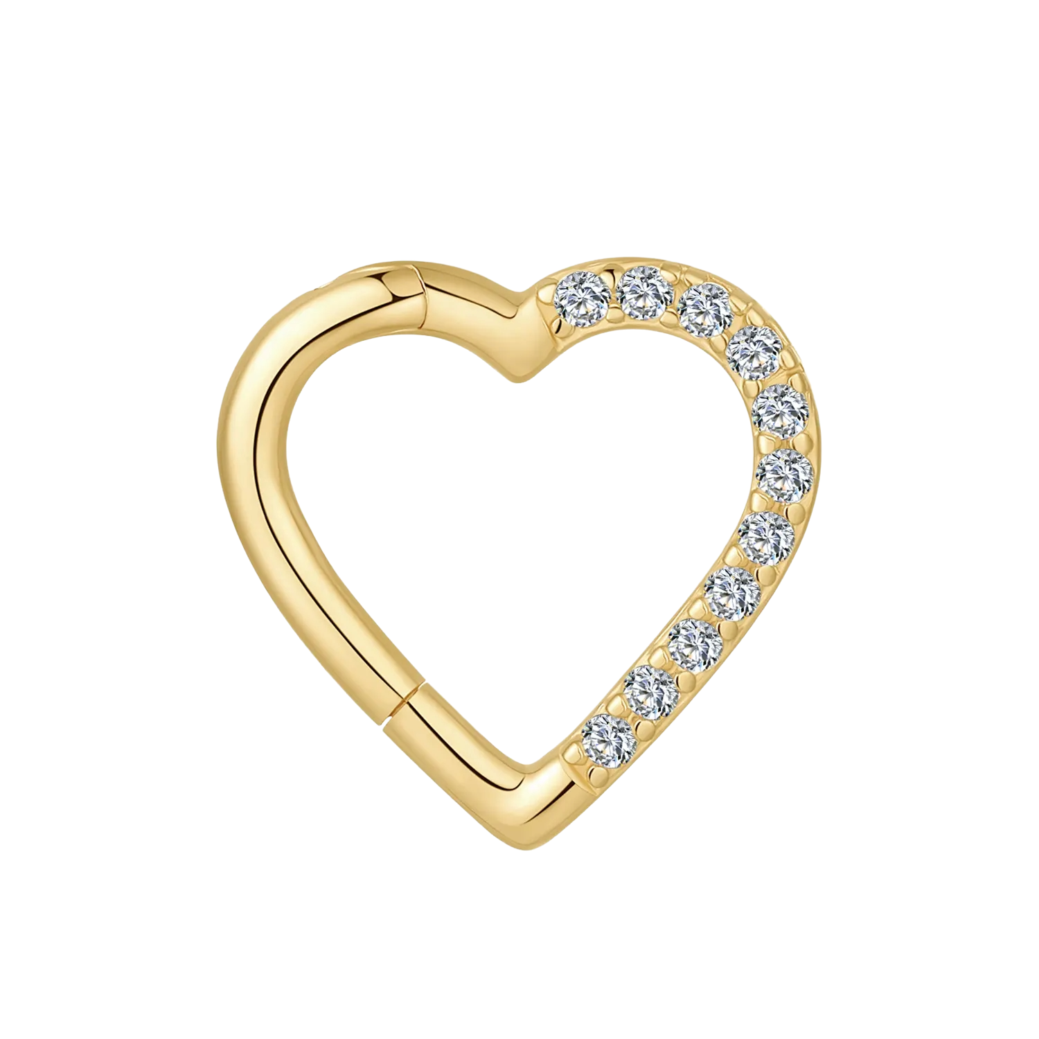 A heart-shaped hinged ring designed to feel romantic but wearable. The hinged segment closure makes it easy to put on, while the row of small CZ stones adds a bright, delicate shine.