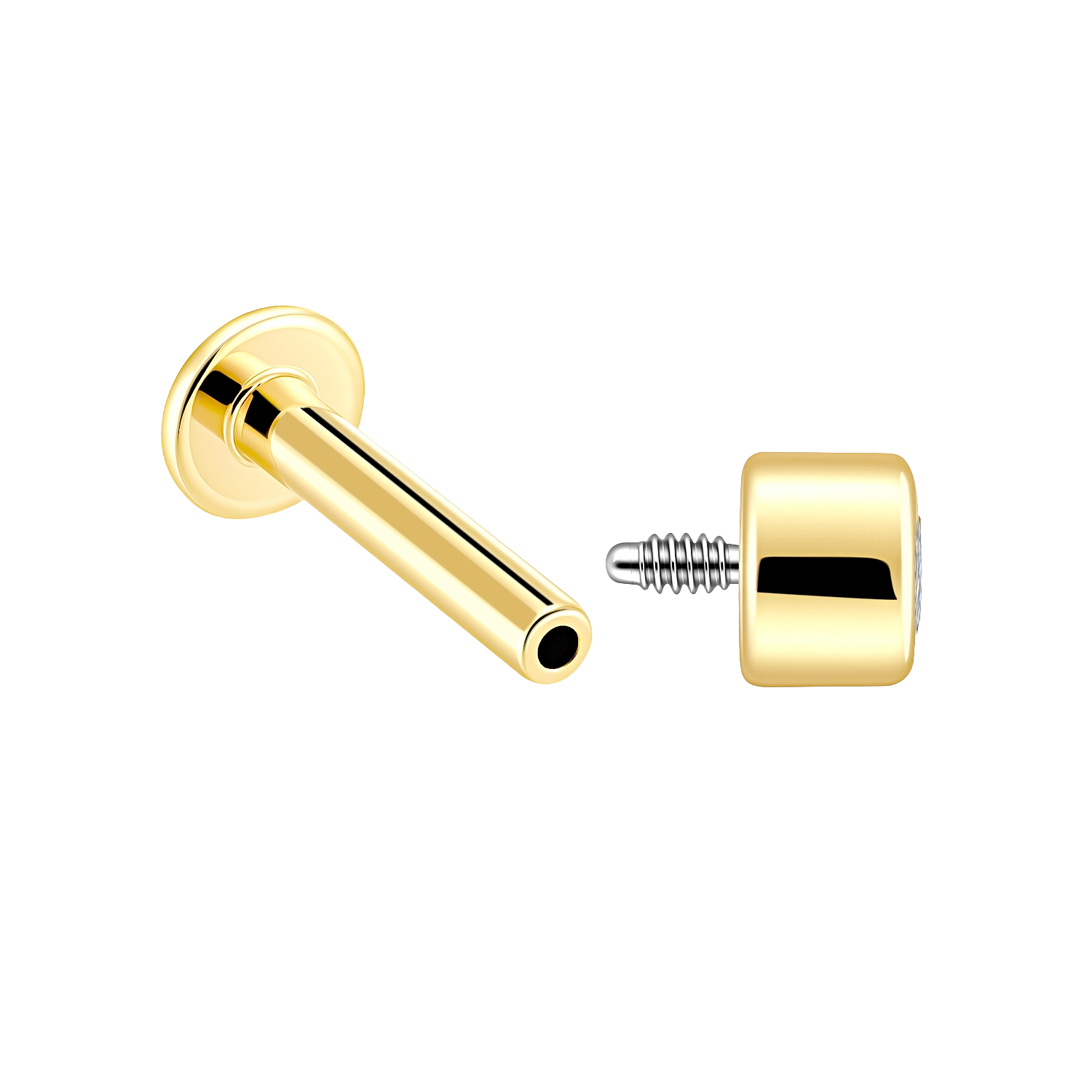 KEY237147G-3CL is a 14K solid gold internally threaded labret stud finished with a clean CZ accent for a discreet, polished everyday look.