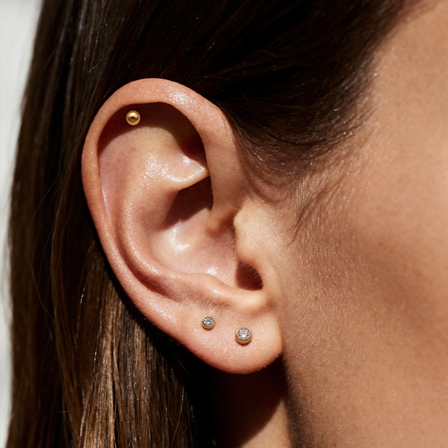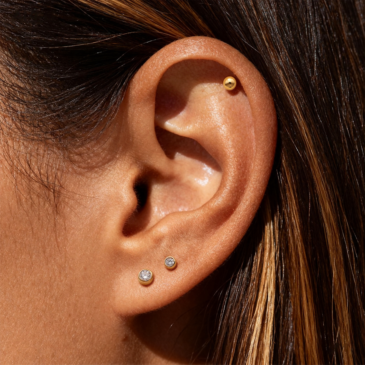 A minimal CZ stud designed for a quiet sparkle and a secure feel. The internally threaded style keeps the look clean while staying comfortable for daily wear.