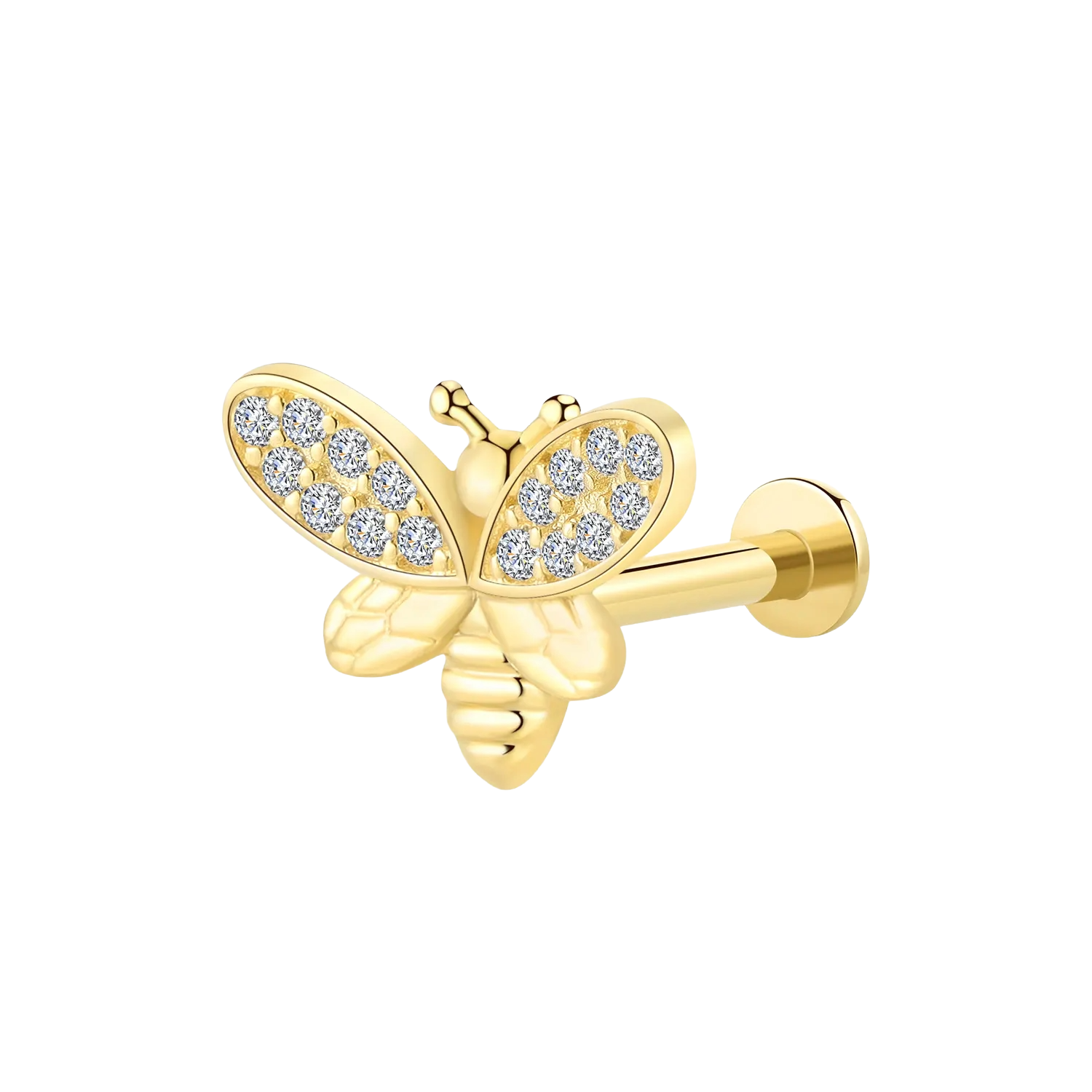 KFV265G is a 14K solid gold threadless labret stud shaped like a ladybug, finished with CZ sparkle for a cute, polished look that still feels easy to wear.