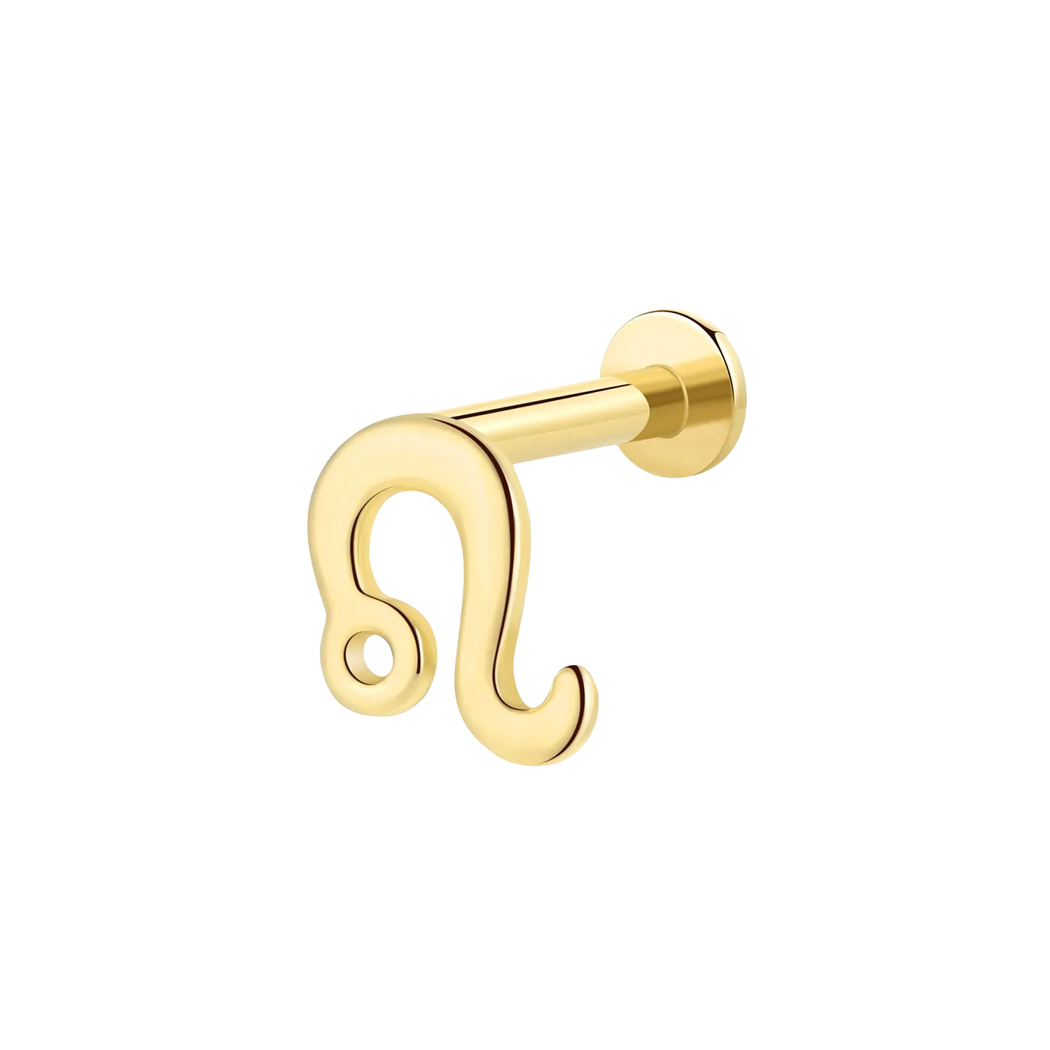 KF216G is a 14K solid gold threadless labret stud featuring a Leo zodiac symbol for a confident, statement-ready accent in a clean silhouette. Pin: 0.45 * 4.5mm. Product: 4.8 * 5.4mm.