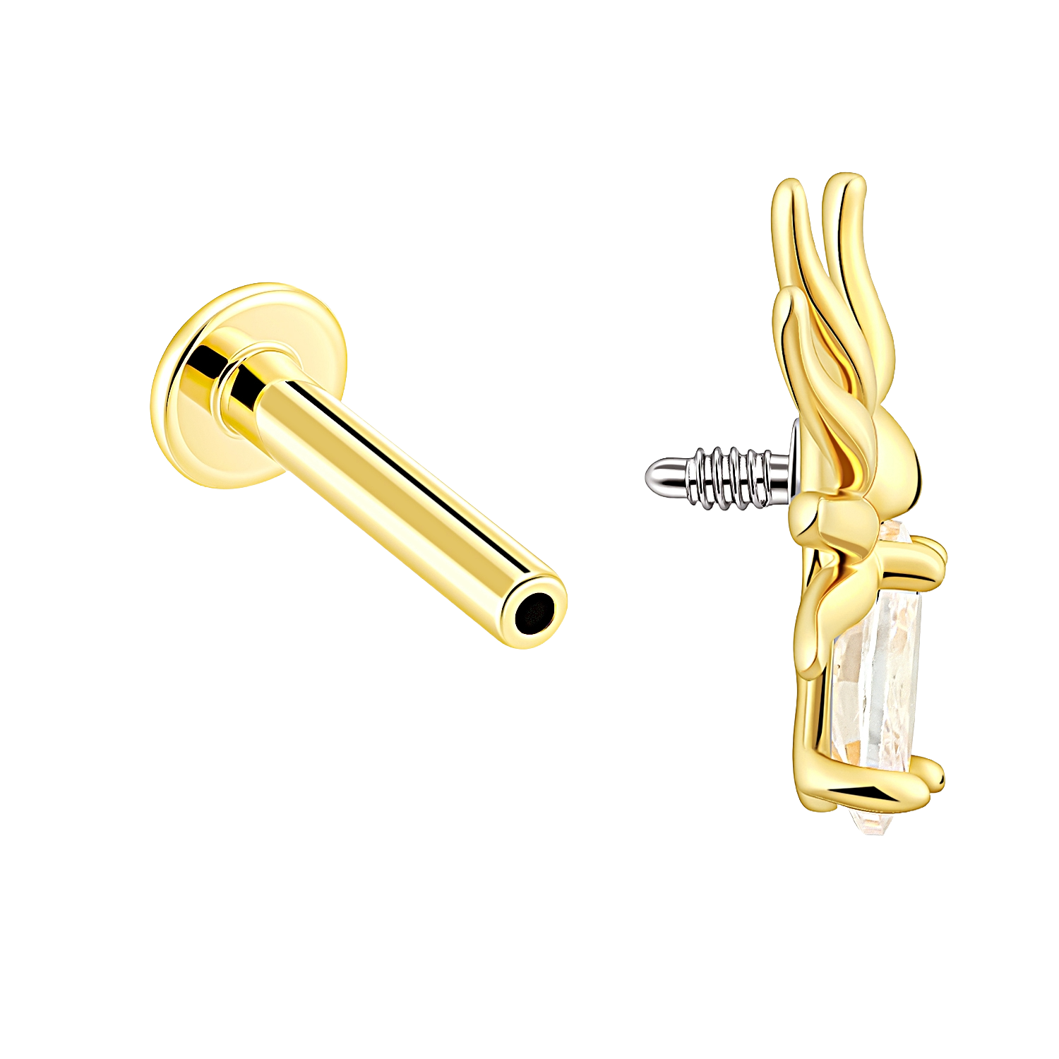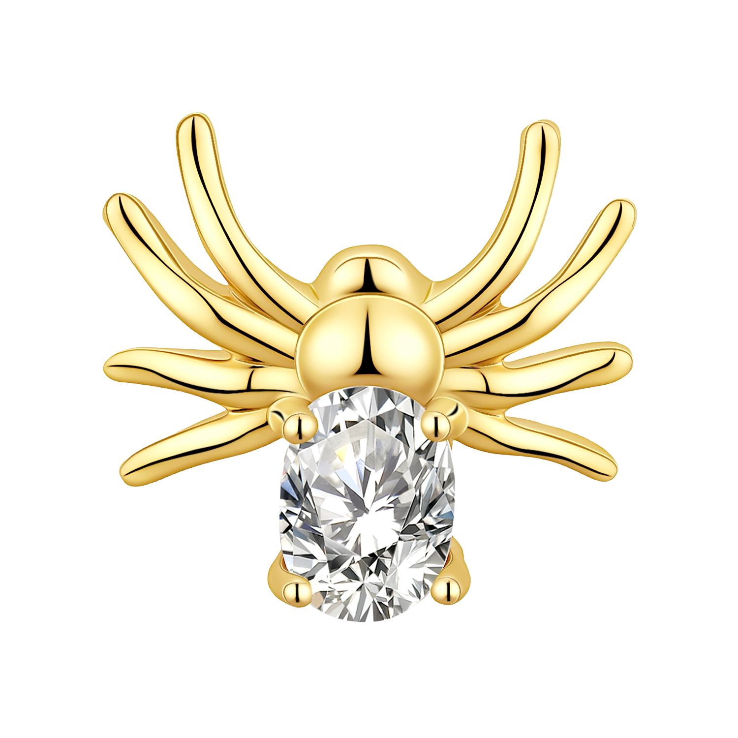 KE153G-16 is a 14K solid gold internally threaded labret stud featuring a spider-shaped design with an opal (or CZ) center for a bold, standout look.