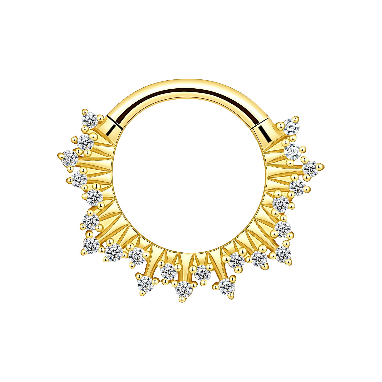 KA50G-1608 is a 14K solid gold hinged segment ring with radiant CZ sparkle for a bright, polished hoop that feels elevated but still wearable every day.