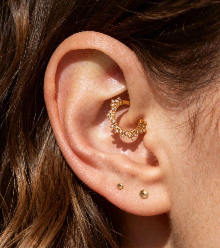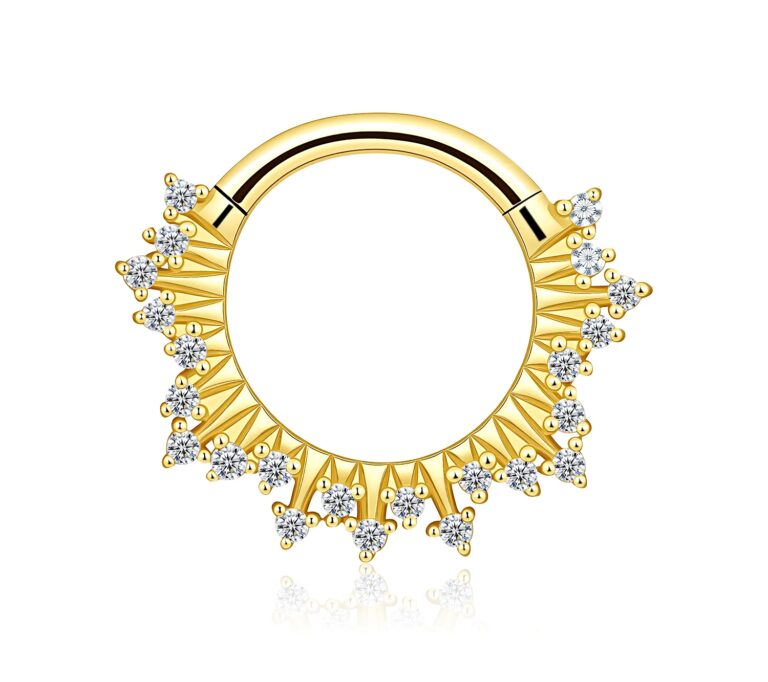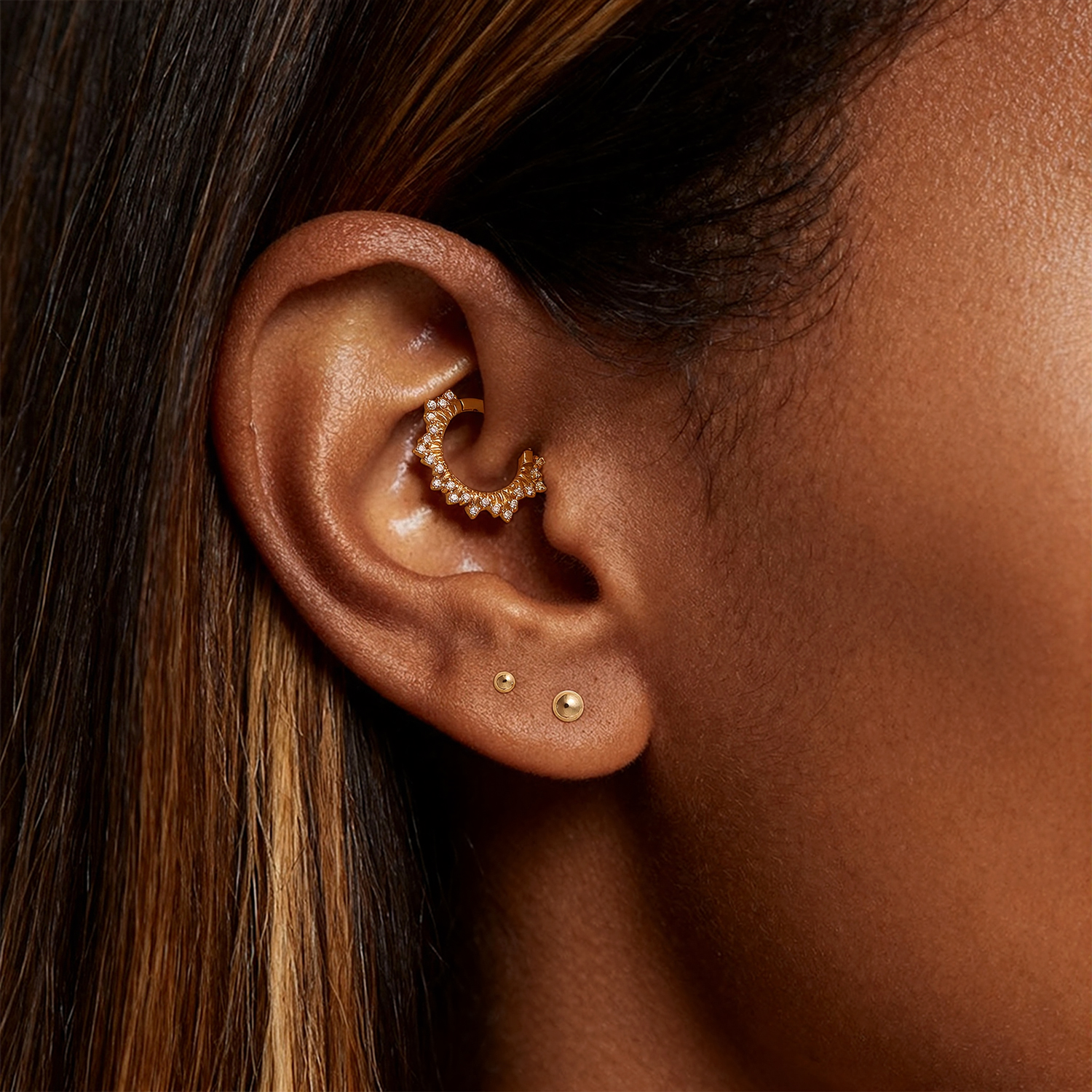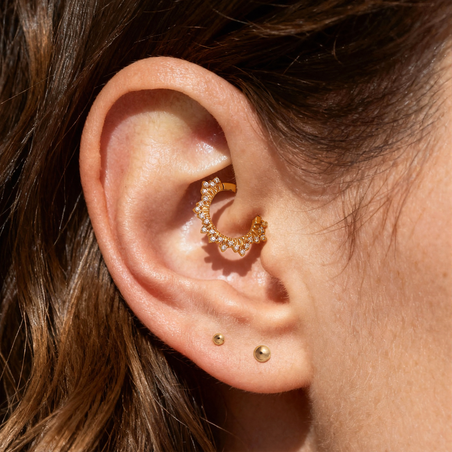 Suitable placements include septum, daith, conch, helix, and lobe.
