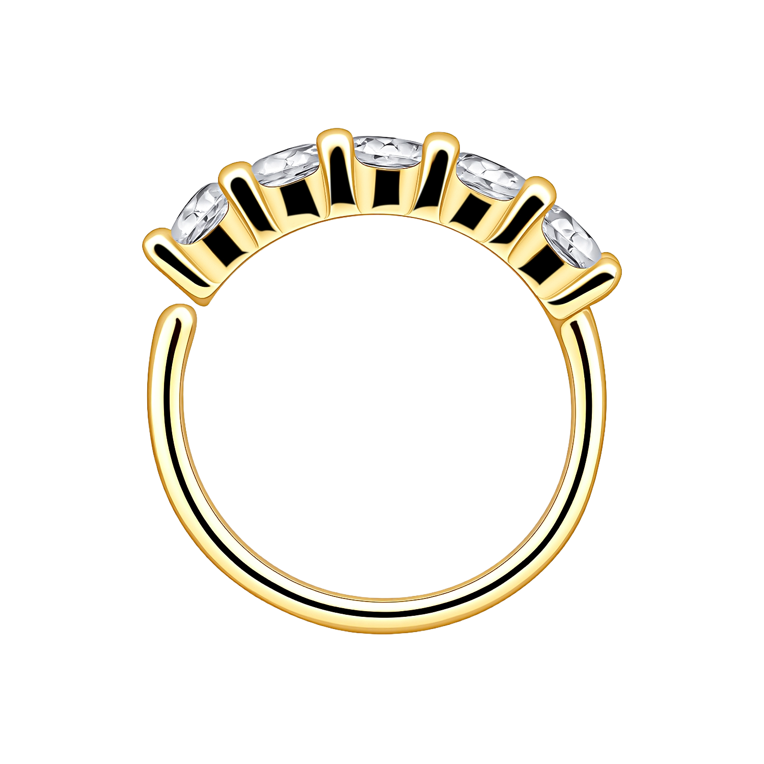 KB04G-2008 is a 14K solid gold seamless ring set with five aligned CZ stones for a clean, bright row of sparkle in a minimalist hoop.