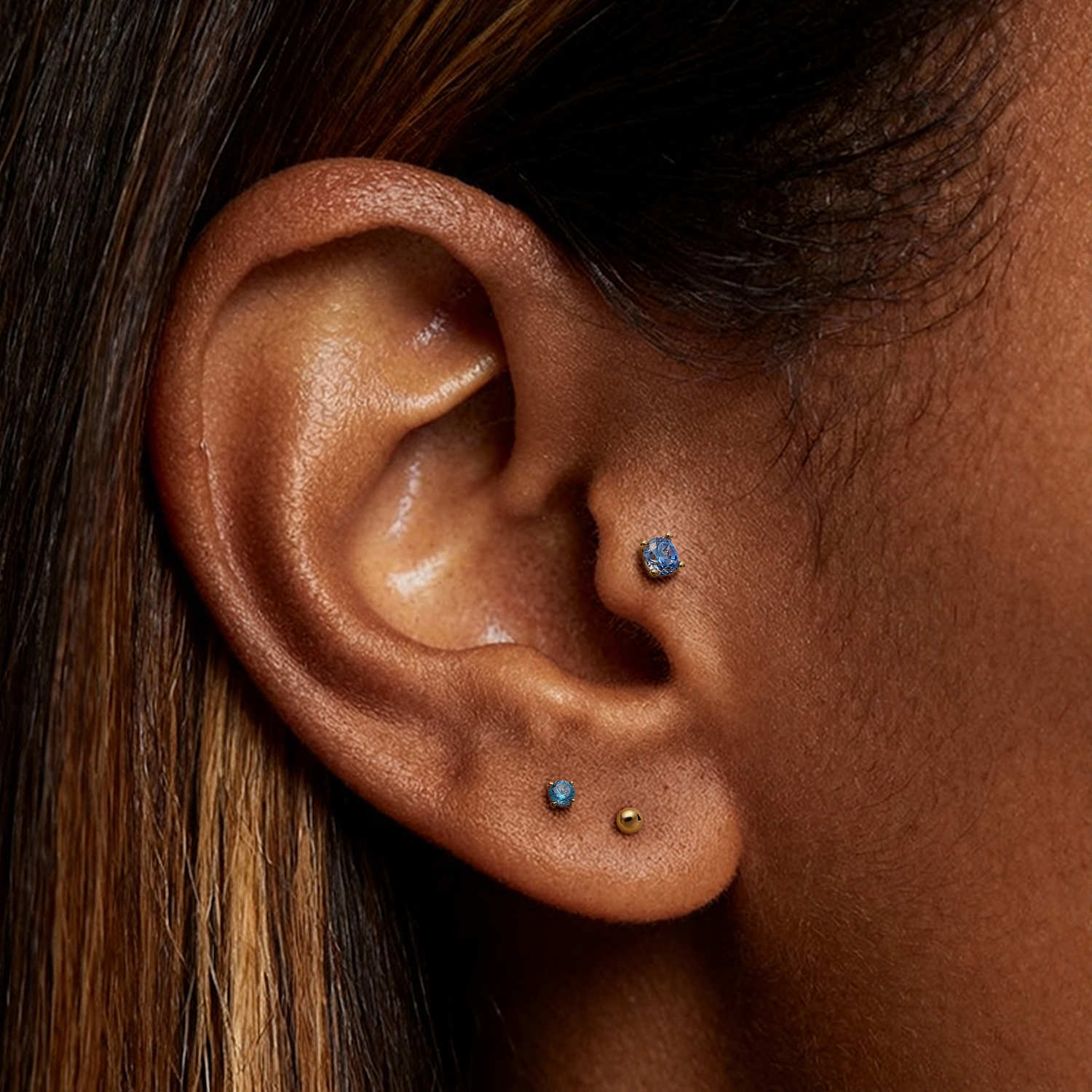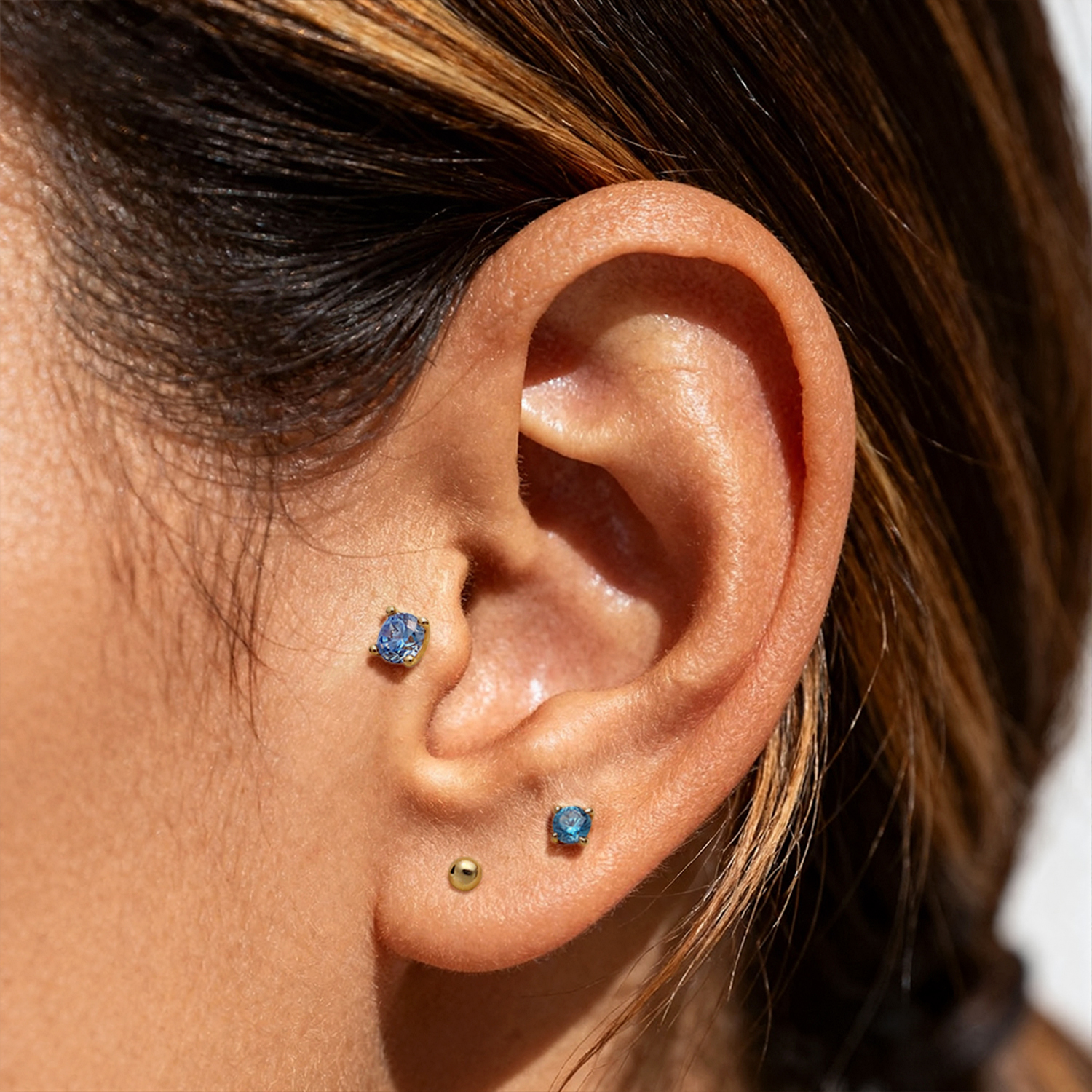 A clean color-stone stud made to add a simple highlight to your stack without extra shapes or heavy sparkle.