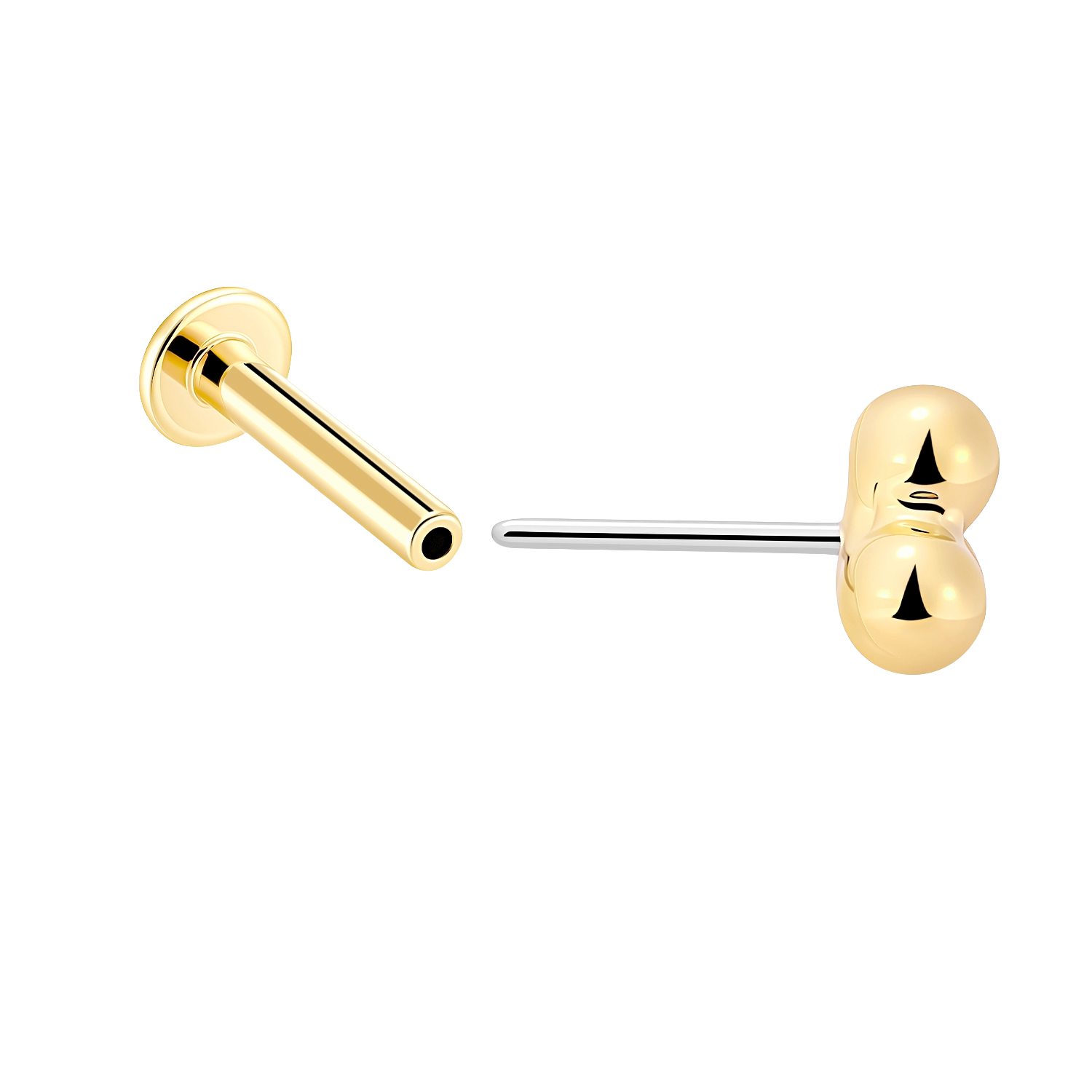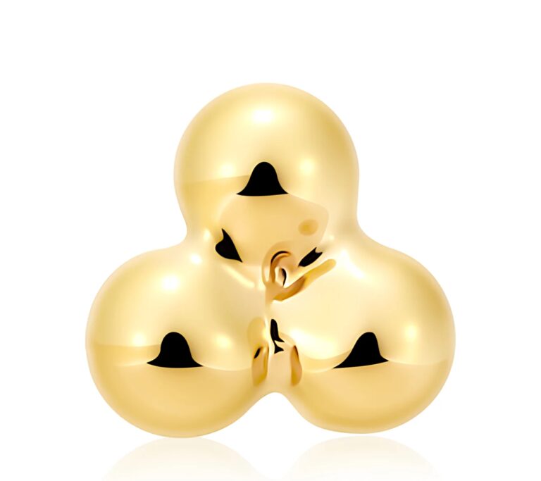 Made from 14K solid gold with a three half-sphere design and a stainless steel base. Threadless labret stud style, approximately 4.1mm overall with each half sphere about 2mm.