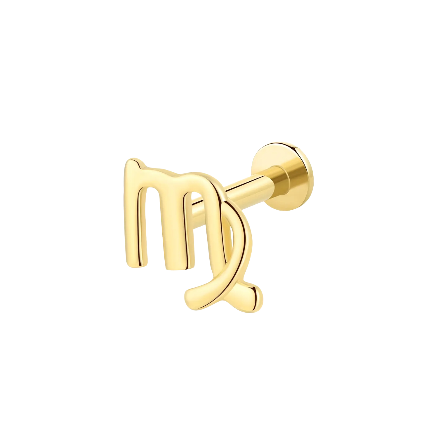 KF217G is a 14K solid gold threadless labret stud featuring a Virgo zodiac symbol for a clean, meaningful accent with a polished finish. Pin: 0.45 * 4.5mm. Product: 5.6 * 5.9mm.